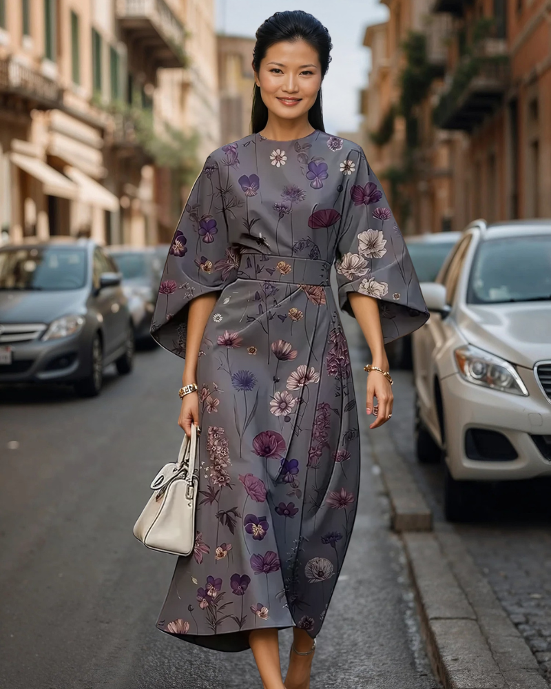Mayte™ | Uzun kollu çiçek desenli maxi elbise